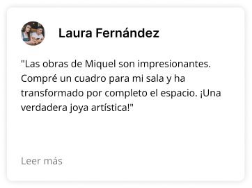 «Soy amante del arte y los escritos de Miquel son pura inspiración. Su capacidad para conectar con las emociones a través de sus obras es única. ¡Volveré a comprar!»